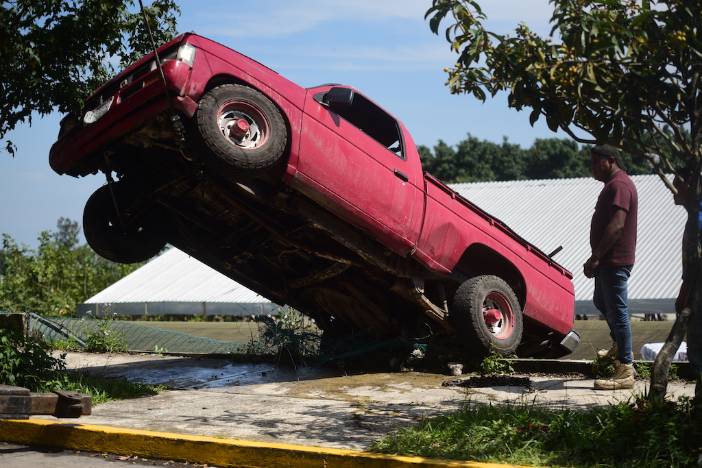 Xalapa, Ver.- Una camioneta particular tipo estaquitas que se quedó sin frenos, terminó su carrera dentro de la escuela primaria Alfonso Arroyo Flores, ubicada en la avenida Del Café, en la colonia Arboledas del Sumidero.