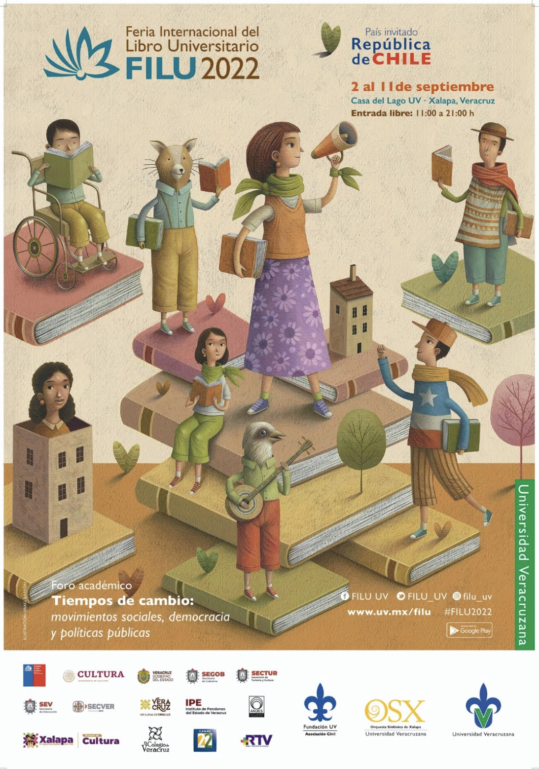 Xalapa, Ver.- Con más de 300 actividades para todo el público, 500 sellos editoriales y un invitado sudaméricano especial, la República de Chile, la Universidad Veracruzana se prepara para dar inicio a la Feria Internacional del Libro Universitario (FILU) 2022 que se realizará del 2 al 11 de septiembre con sedes principales en la Casa del Lago y la Unidad de Artes de Xalapa.