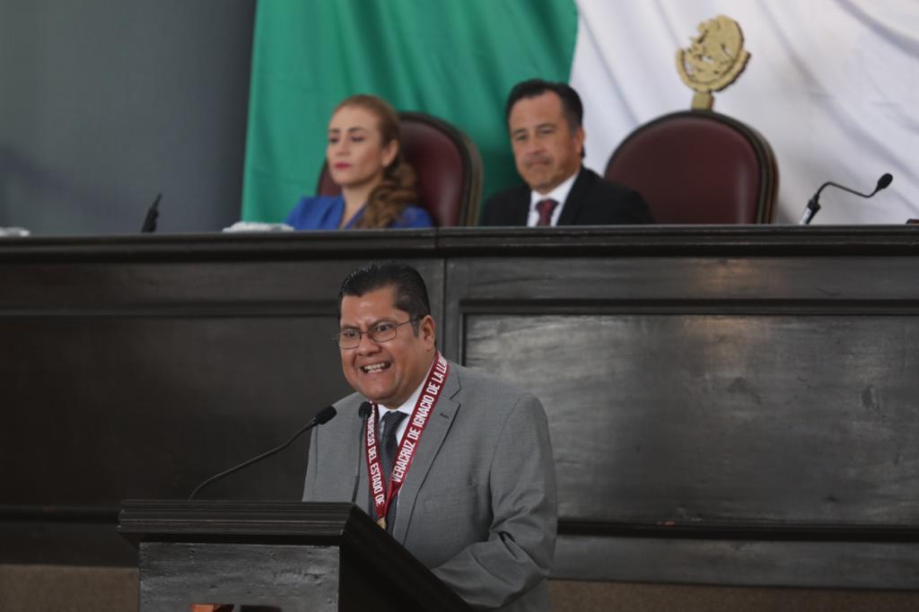 Perote, Ver.- En sesión solemne de la LXVI Legislatura del Congreso del Estado, el gobernador Cuitláhuac García Jiménez entregó la Medalla Heberto Castillo Martínez 2022 al doctor Héctor Vázquez Leal, reconocido por sus méritos en el ámbito de la Robótica y las Matemáticas aplicadas a la Ingeniería y las Ciencias Biológicas y de la Salud.