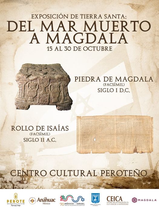 Esta es la primera exposición en México que muestra los facsímiles de La Piedra de Magdala y del Gran Rollo de Isaías, que forman parte del antiguo judaísmo en el contexto del siglo I d.C. Estás piezas arqueológicas marcaron el desarrollo del periodo bíblico y los pasos de Jesús de Nazareth por Galilea.