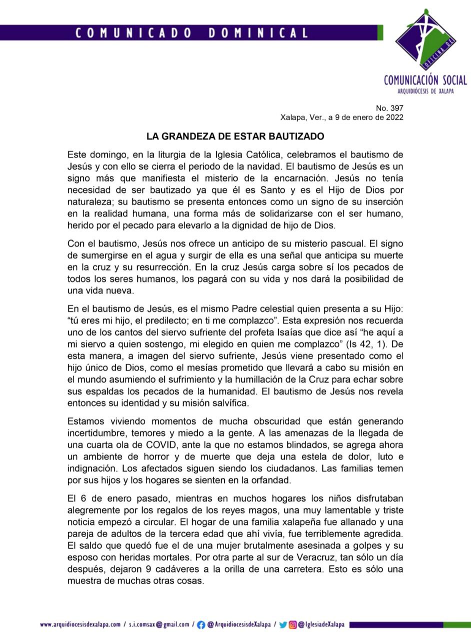 Xalapa, Ver.- La cultura de la muerte solo nos lastima y denigra, opinó el vocero católico, José Manuel Suazo Reyes, en el tradicional comunicado dominical de la Arquidiócesis de Xalapa.