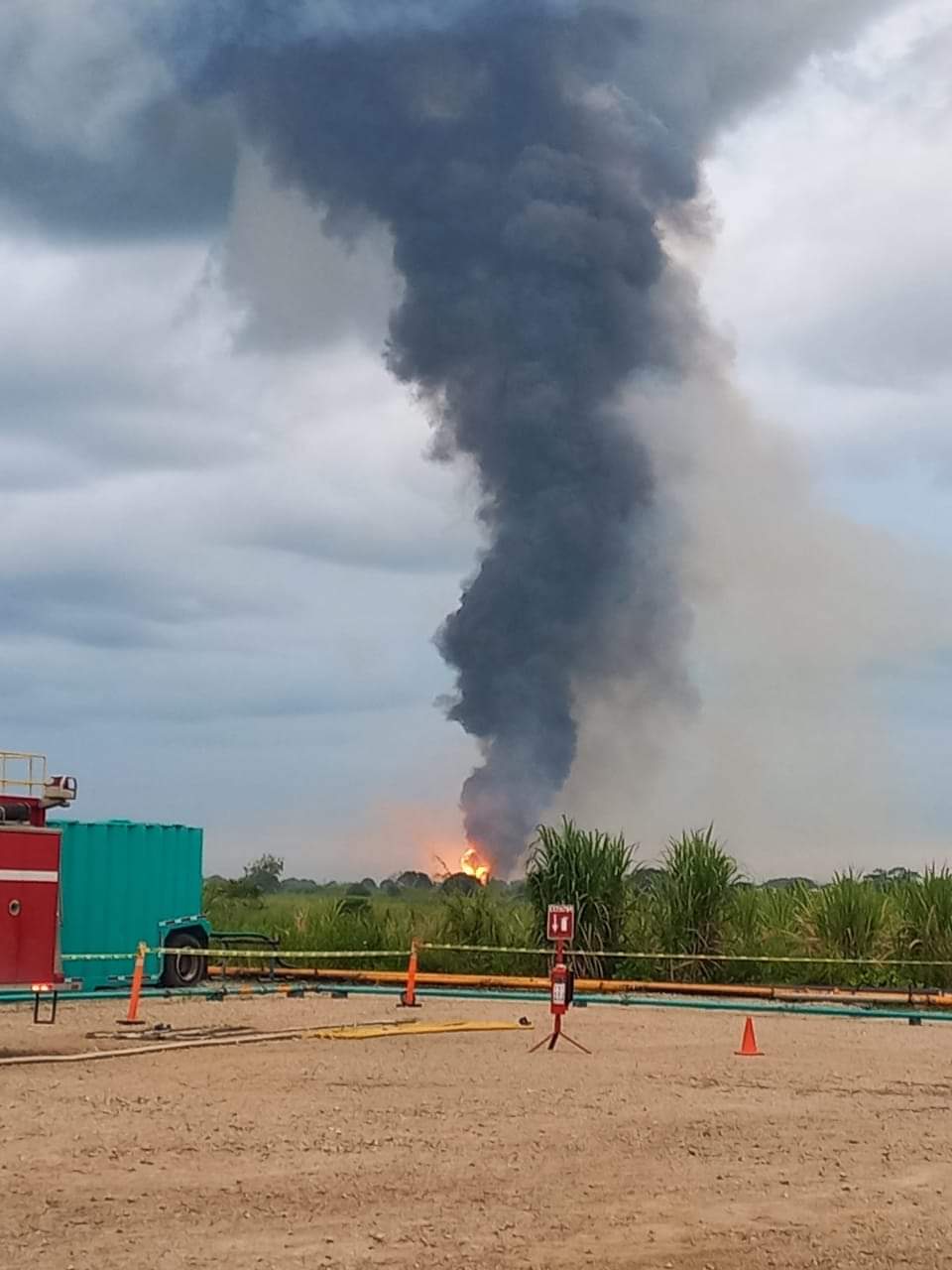 En el sitio se encuentra el Ing. Juan Rasgado, responsable del área de Seguridad de Pemex, elementos de la Guardia Nacional, la Sedena, Protección Civil Municipal, Seguridad Física de Pemex, Protección Civil Estatal y TDH de Pemex, Contraincendios Paredón.